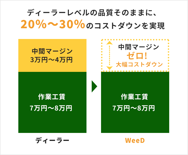 WeeDなら、ディーラーと同じ修理内容で7〜8万円で修理可能!